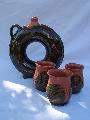 Sorkifalud, sütőedények, gyertyatartók, bugyiga, butella, virágtartók, vázák, kaspók, temetkezési úrnák, aromalámpa, mécsesek, cserépkályhacsempe, boroskancsó, dísztárgyak, szobrok, csipkés edények, lámpák, serlegek, plakettek, agyag játéktégla